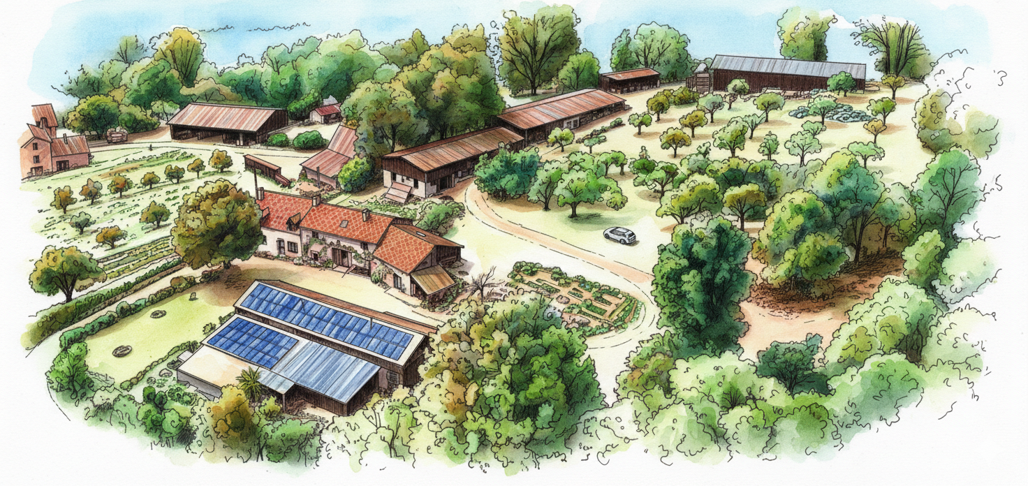 Une petite ferme ferme en agriculture biologique depuis 1991, qui produit à partir de vergers de plein vent, des jus de pomme, cidres, vinaigres,...